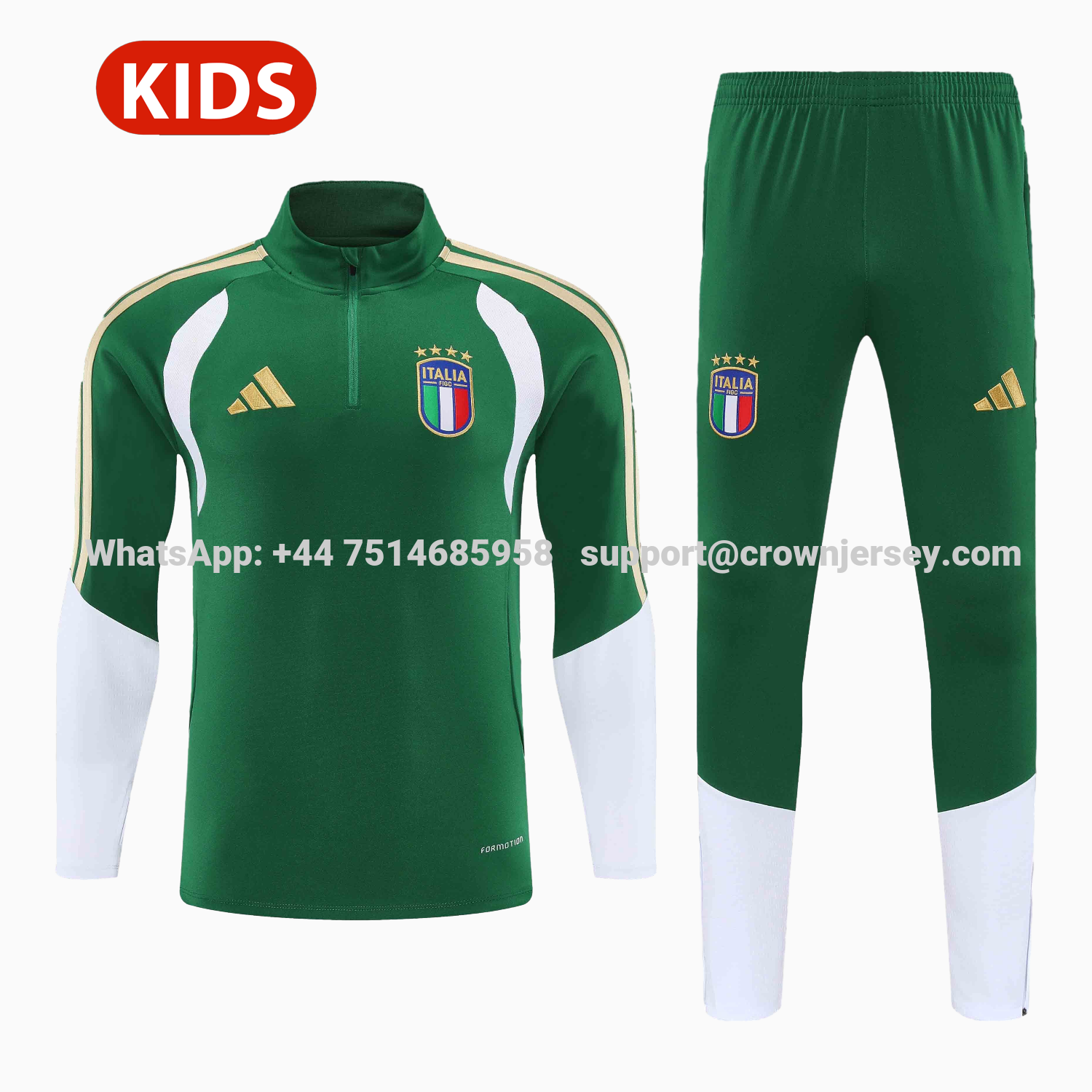 Italy 2026 Kids Long Sleeve Training Set - Green Top & Pants