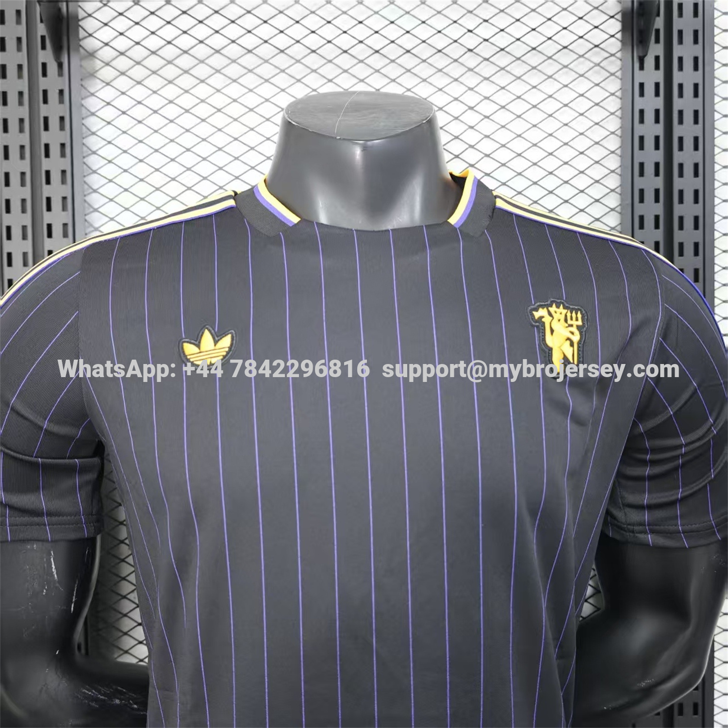 Manchester United 25-26 Trefoil Purple Lines Black Travel Jersey - Player Version