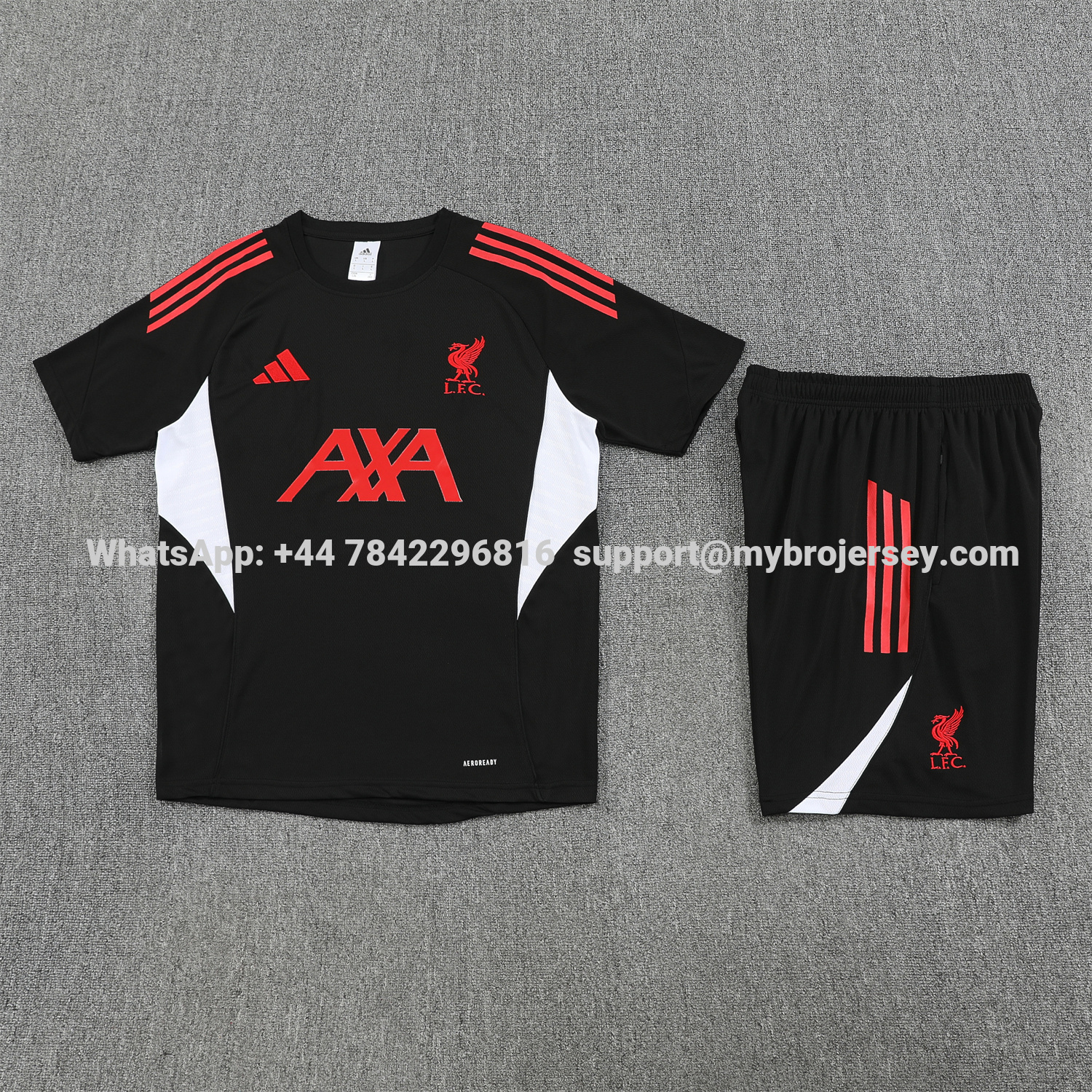 Liver.pool 25-26 Short-Sleeve Training Set - Black With Red Top & Black Shorts