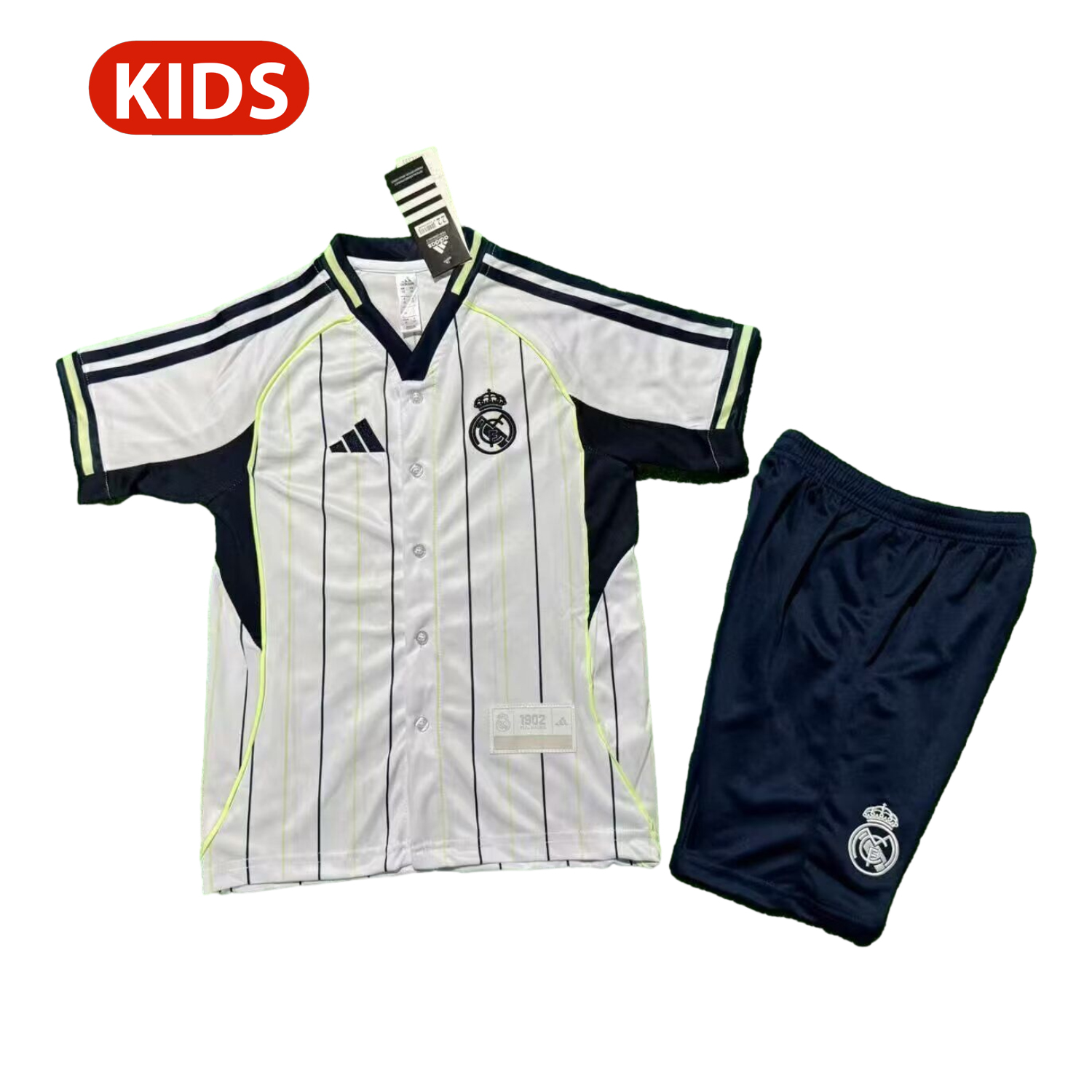 Real Madrid 25-26 White Special Baseball with Black Stripes Kids Kit